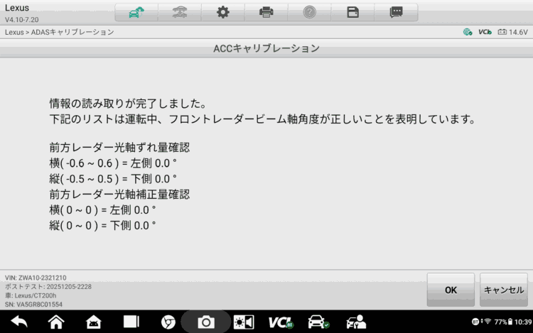 フロント修理後のレーダーエーミング作業をご依頼頂きました。